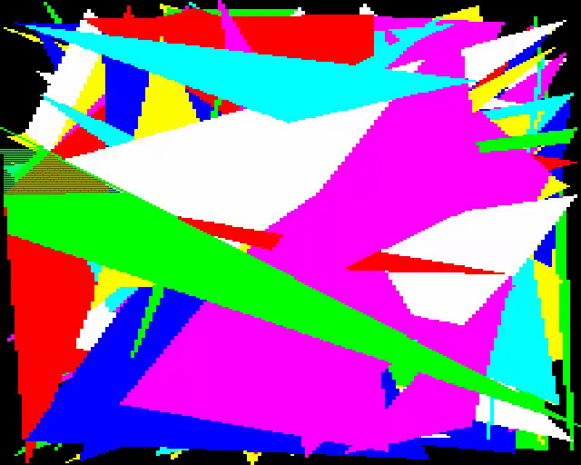 Random triangle generation, colors, and fills. Really such simple code that still sucks you into the screen!